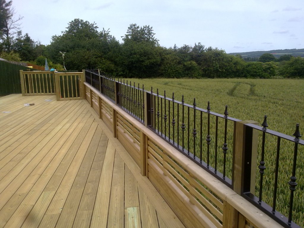 Decking and balustrade. Bespoke decking areas to suit your requirements. Choose from low level decking to a raised area with steps and fascia boards. We supply & install standard, heavy duty and slip resistant decking boards with the option of balustrade.
